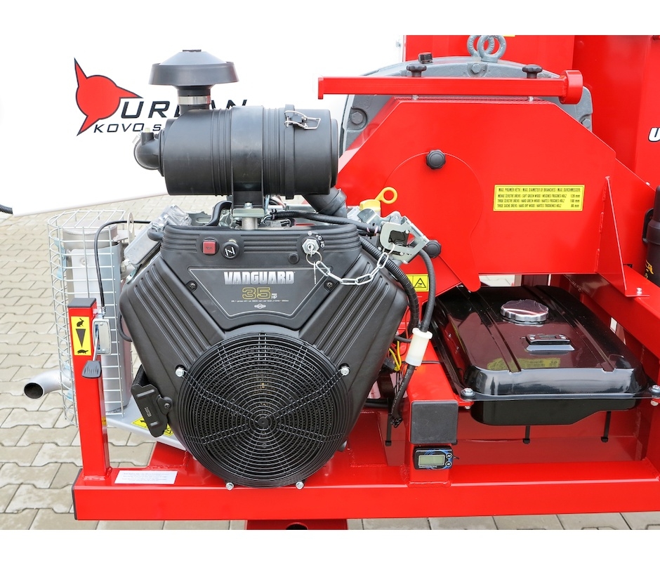 Der Holzhacker wird von einem 35 PS Briggs & Stratton VANGUARD Viertakt-Benzinmotor angetrieben. Der Motor hat einen elektrischen Anlasser, Schmieranzeiger und Motorstundenrechner. Die Kapazität des Kraftstofftanks beträgt 15 Liter und ist mit einer Kraftstoffmengenanzeige ausgestattet. Vom Motor wird die Leistung durch die Keilriemen zum Getriebe mit Öl, die die Hackvorrichtung antreibt, übertragen.