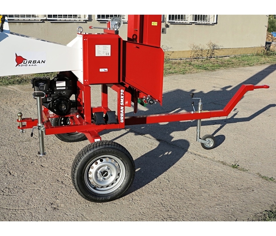 Der Holzhacker hat ein verbreitertes Geländefahrwerk, das auch größere Geländeunebenheiten zu überwinden. Das Fahrwerk hat ein Schieberad auf der Vorderseite und zwei verstellbare Beine auf der Rückseite. Der Schwerpunkt der Maschine liegt leicht vor der Achse. Der Holzhacker SMX70 ist an der 50mm Kugel der Deichsel befestigt. Es ist möglich, einen kleinen Anhänger an eine klassische Aufhängung oder eine Kugel mit 50 mm Durchmesser zu befestigen. Der Holzhacker SMX70 ist nicht für den Straßenverkehr konzipiert.