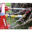 Bei der Arbeit und Fahren ist der Holzhacker auf die Hydraulik des Traktors immer in der gleichen Arbeitshöhe (nicht auf dem Boden) angehoben. Um den Holzhacker in dieser Position zu sichern, verwenden wir die mit dem Holzhacker gelieferten Sicherungsketten.